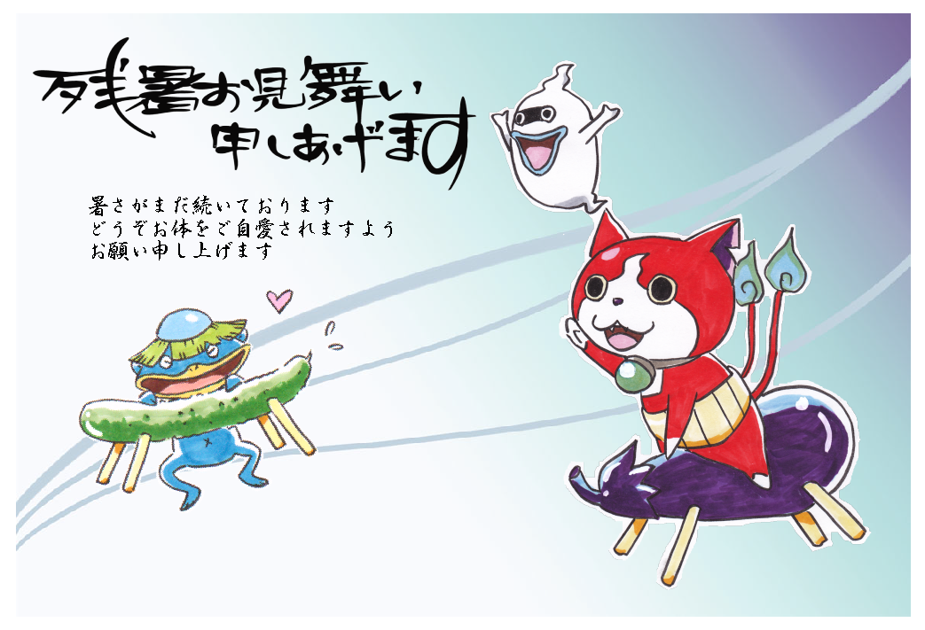 友人の子供たちが『妖怪ウオッチ』にはまっているので、受け狙いで描いてみました(笑)。
